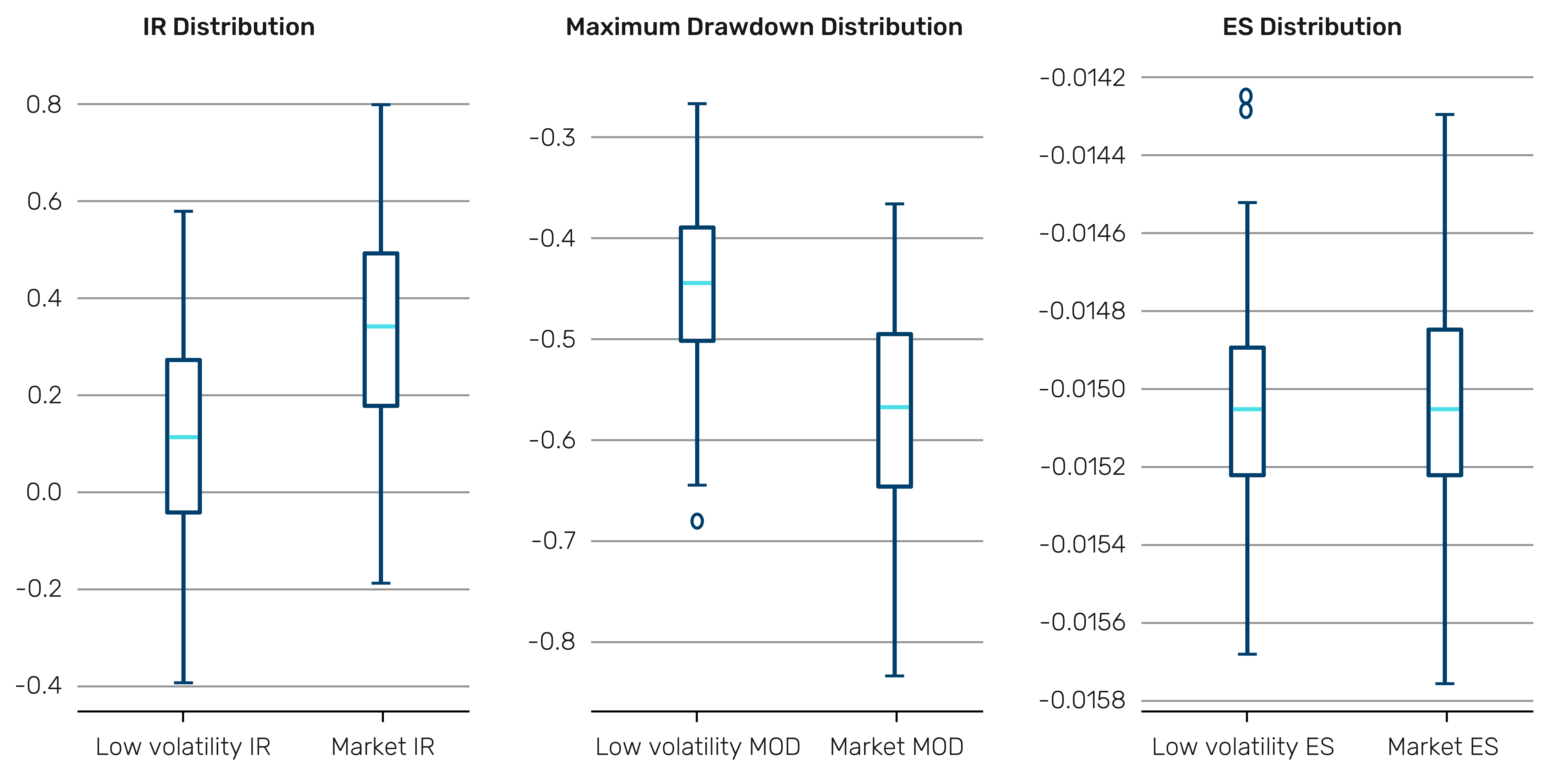 Figure 1. Improved drawdown and worse IR of regenerated low-volatility portfolios